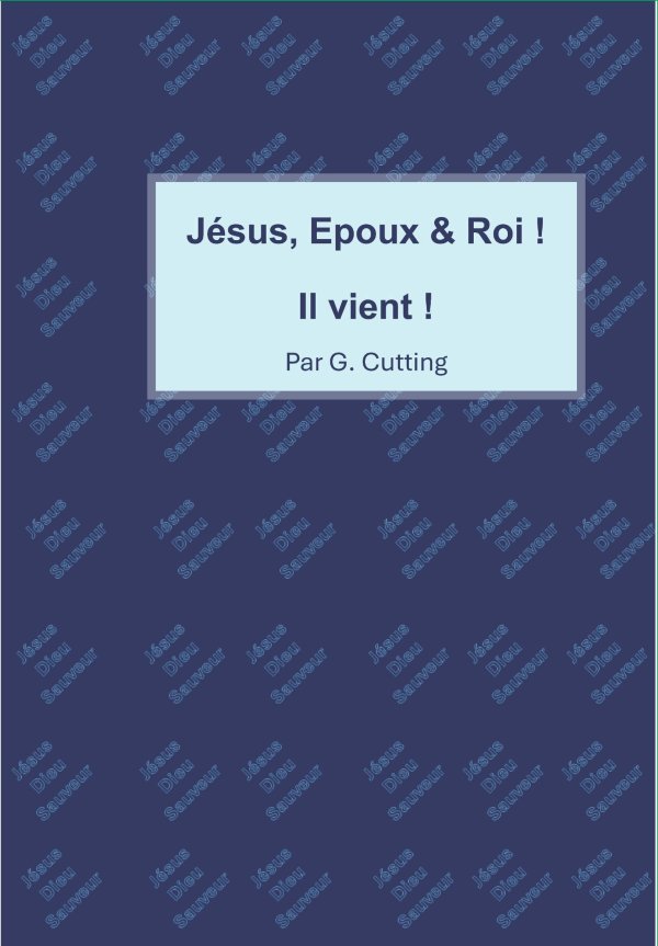 "Jésus, Epoux & Roi ! Il vient !" [IGW] Il s'agit d'une méditation de P. Cutting sur la venue du Seigneur Jésus pour enlever les siens. |