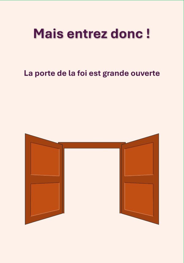 "Mais entrez donc ! La porte de la foi est grande ouverte" [IGW] L'auteur montre la porte qui s'ouvre sur le chemin qui qui conduit à la vie éternelle. Il termine par un message d'encouragement pour ceux qui possèdent cette vie éternelle/ |