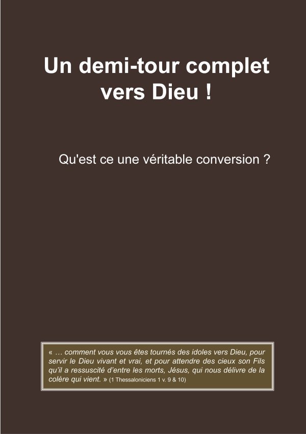 "Un demi-tour complet vers Dieu! - Qu'est-ce qu'une véritable conversion ?" [IGW] L'auteur montre comment se manifeste la présence de la vie divine chez celui qui est passé par une vraie conversion. Le "religieux" y trouvera le chemin du salut, et le croyant l'exhortation quant à son témoignage. |